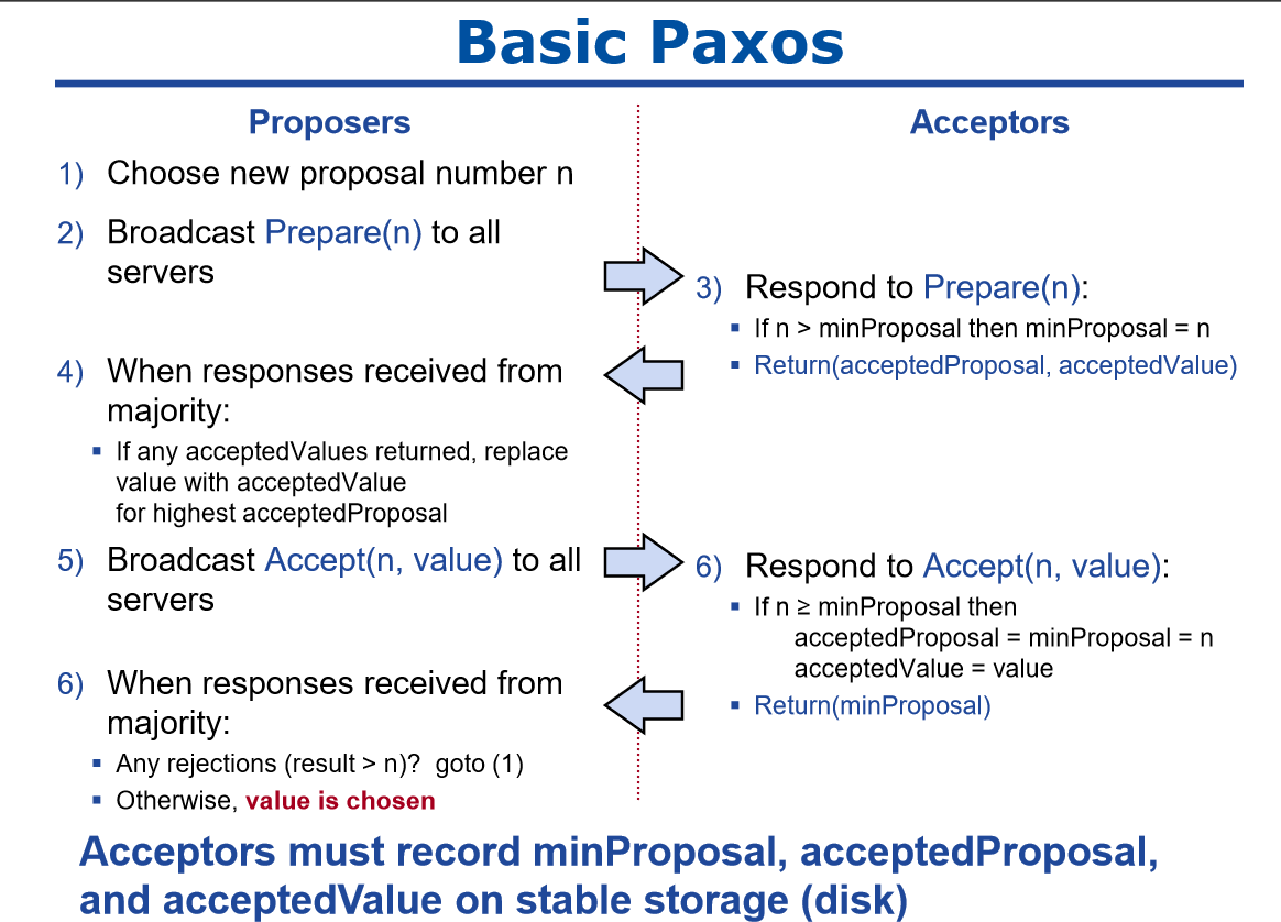 上图是Paxos基础算法说明,通过一个决议需要两个阶段: