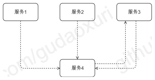 如上图所示,对应我们的真实场景下,服务4一般可为公共服务,为其上层业务(服务1、服务2、服务3)提供能力支撑。公共服务不应该依赖于上层的业务这点毋庸置疑,否则会导致公共服务不纯粹,无法独立。