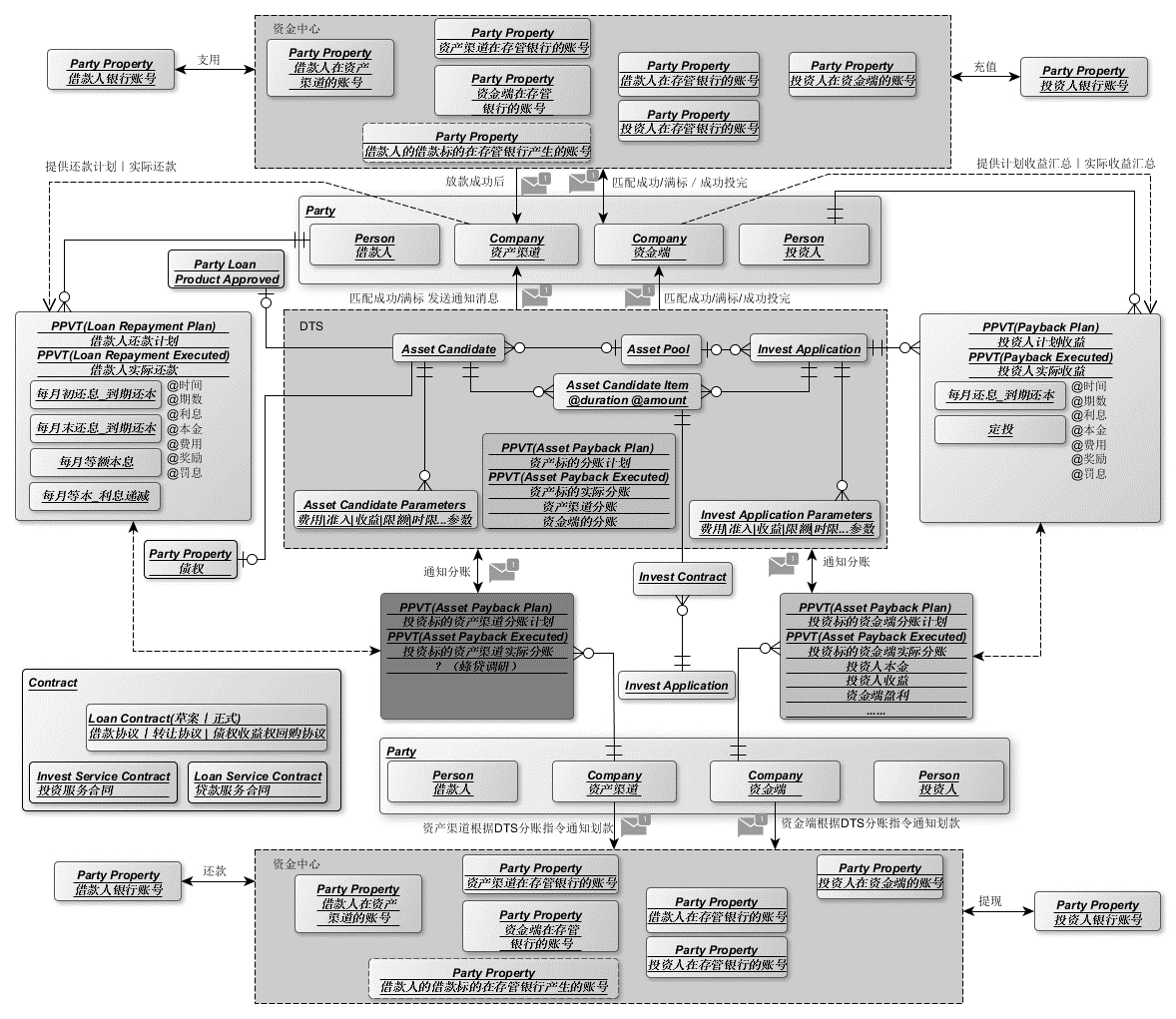 下图笔者所服务公司资产端数据结构的领域模型示例,通过领域建模可以很清楚地明确各实体对象的归属,进而确定业务服务的边界。