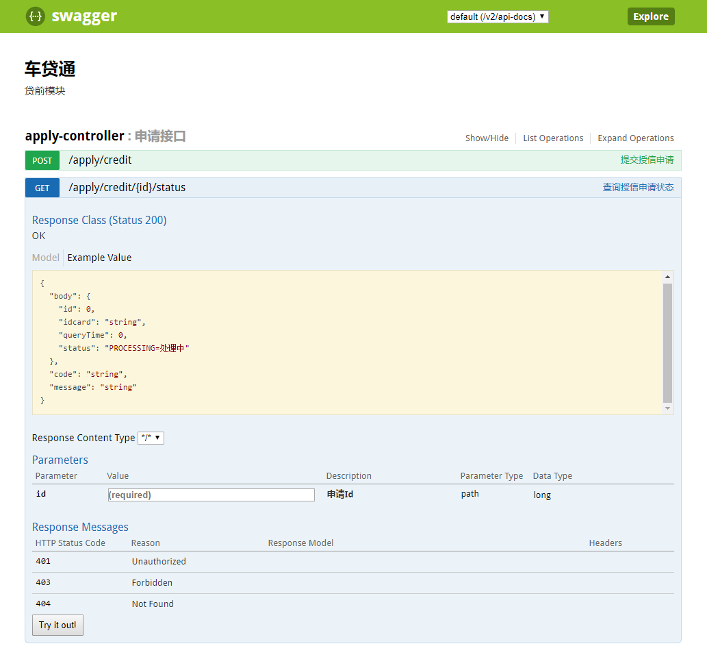 这样我们就可以通过 /swagger-ui.html 来访问了,示例如下:
